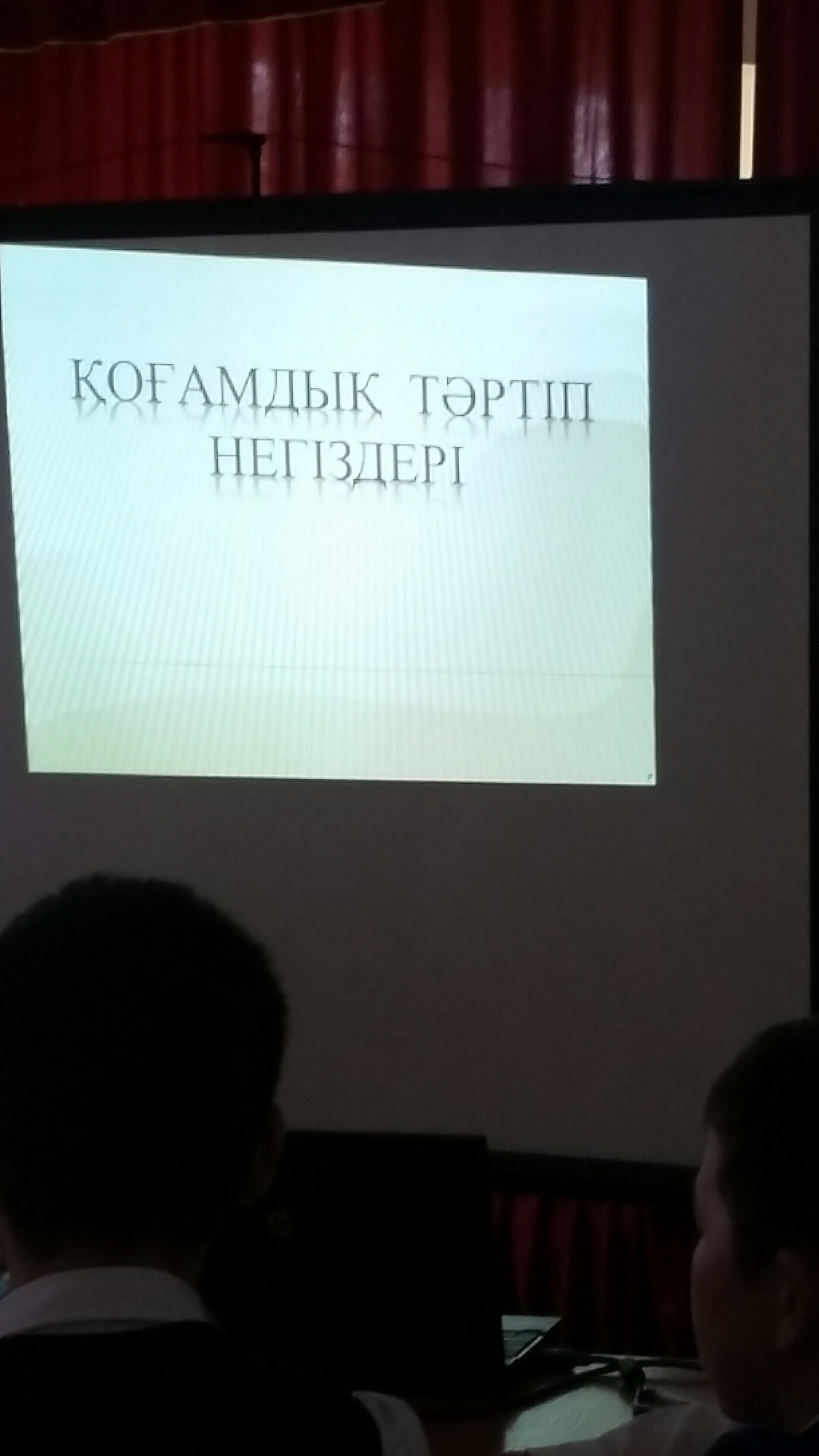 Мектебімізде 16 қазан күні 8-сыныптың ұл балаларына "Қоғамдық тəртіп негіздері" тақырыбында тəрбие шарасы өткізілген болатын. Шараның мақсаты - құқықтық тəрбиенің өмірлік қажеттілігін оқушыларға түсіндіру.