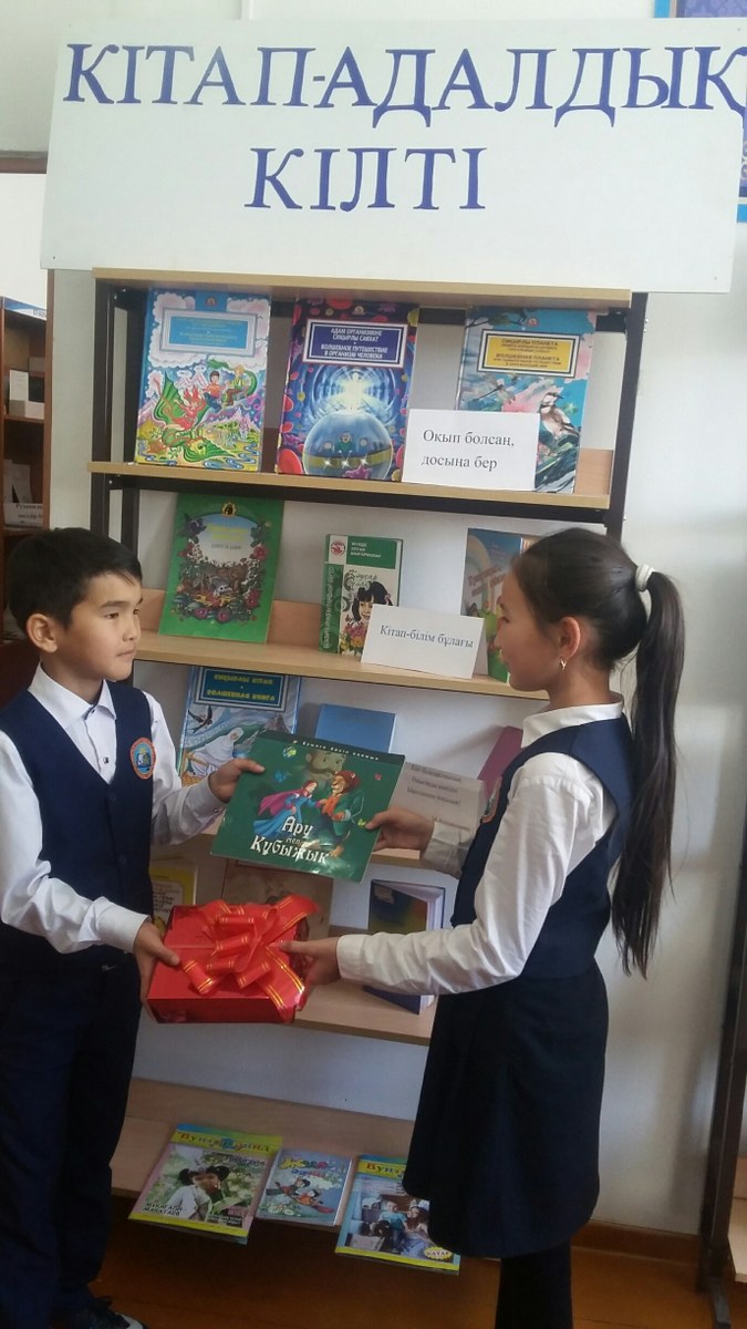 Мектебімізде "Кітап - адалдық кілті" жобасы аясында " Өзің оқы да, өзгеге ұсын " кітап алмасу шарасы ұйымдастырылды. Шараның мақсаты - оқырман қауымның кітап оқуға деген қызығушылығын арттыру, бос уақыттарын тиімді ұйымдастыру.