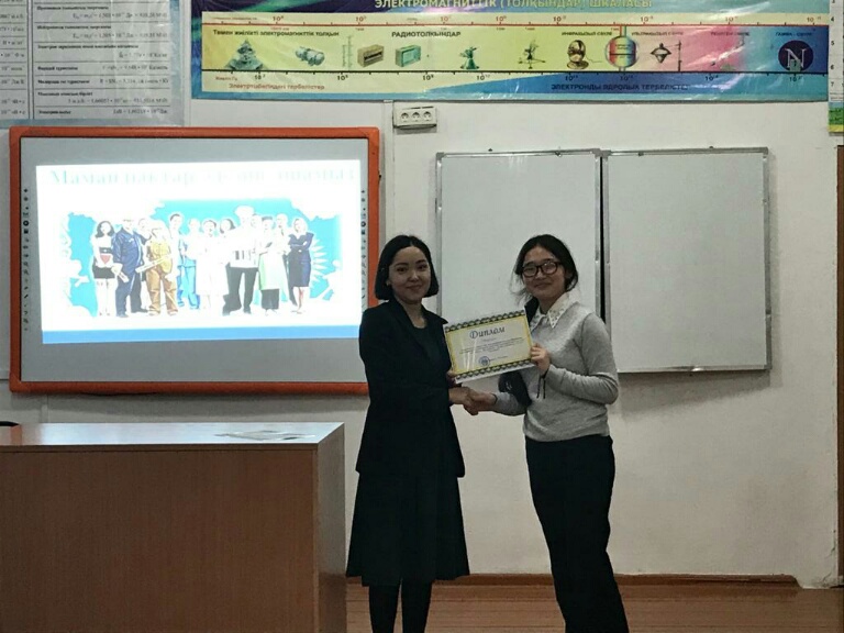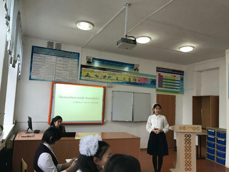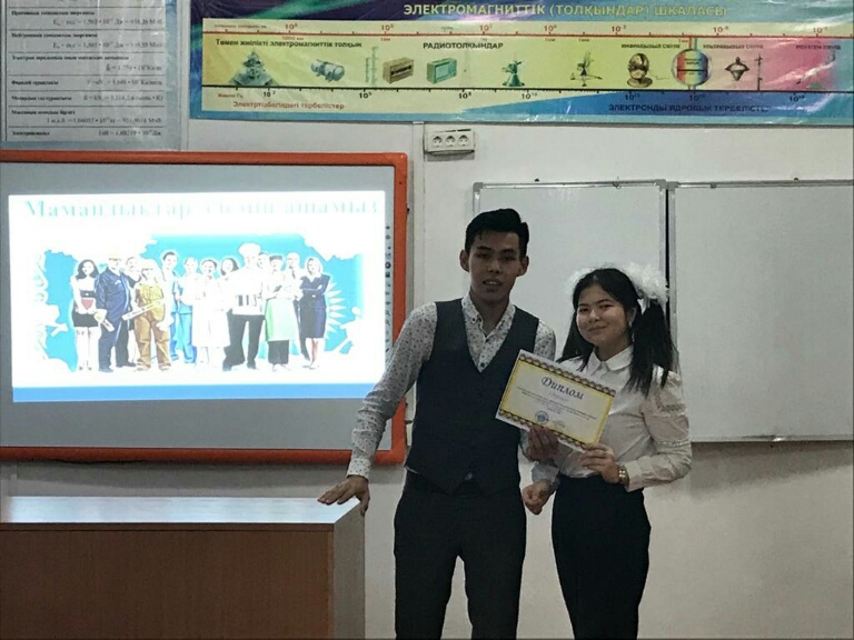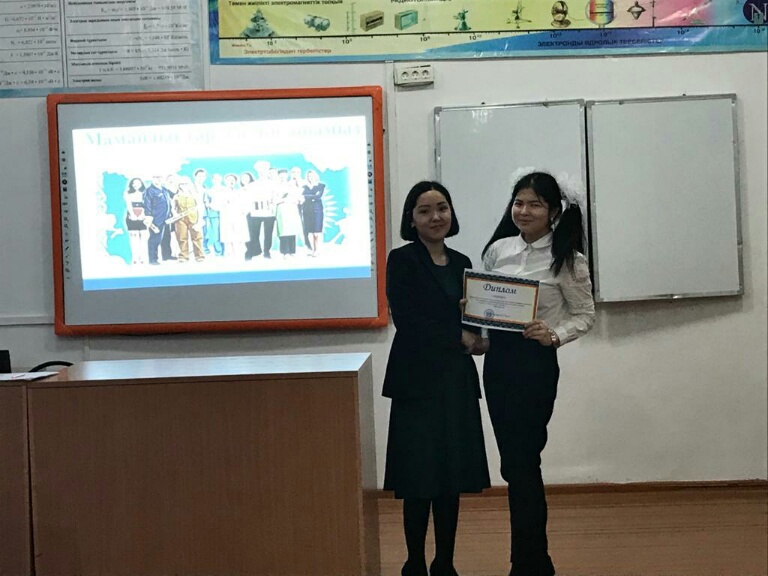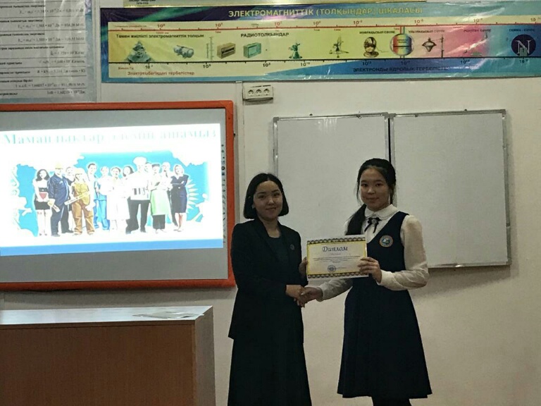 Мектебімізде 4ақпан күні 9-11 сыныптар арасында " Мамандықтар əлемін ашамыз " атты мектепішілік форумы өткізілген болатын. Форумның мақсаты : Оқушыларға мамандықтың еңбек қызметінің негізгі бөлігі екенін түсіндіру. Оқушыларымыз мамандық туралы өз пікірлерін білдіріп, форумға белсенді қатынасып, дипломдармен марапатталды.