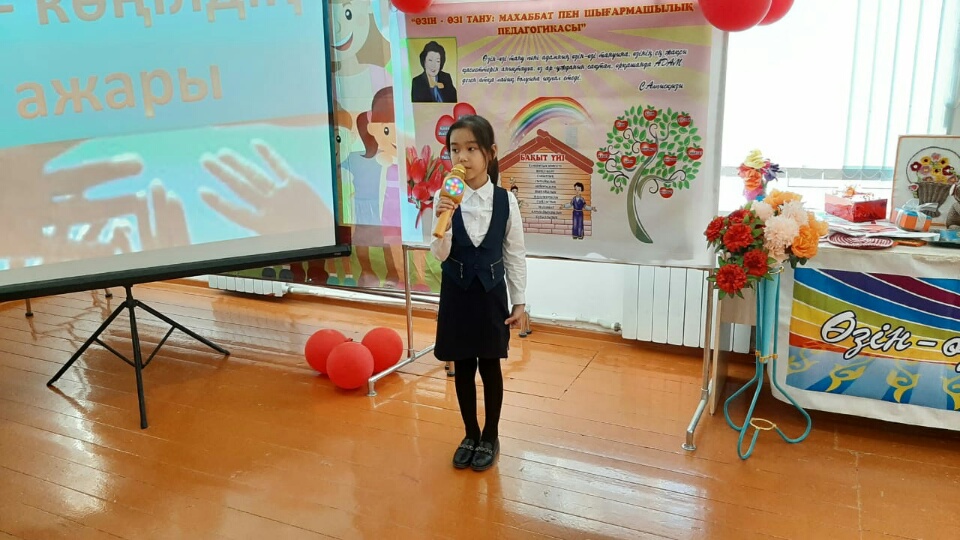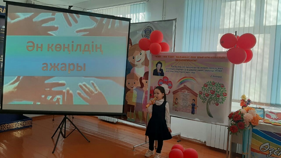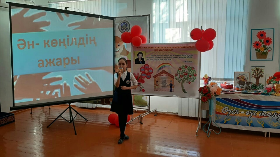 Мектебімізде " Өзін - өзі тану " пəнінің " махаббат пен шығармашылық педагогикасы " онкүндігінің соңғы сағаттары "Əн - көңілдің ажары " əн айту байқауы, Əлем, ана, қамқорлық қабырға газеті байқауы өткізілген болатын. Оқушыларымыз өз белсенділіктерін көрсете білді.