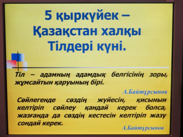Ана тілі – біздің ар-ождан, адамгершілігіміздің айнасы. Адам ана тілімен бақытты, ана тілімен асқақ." Ана тіліміздің мәртебесі асқақтай берсін!