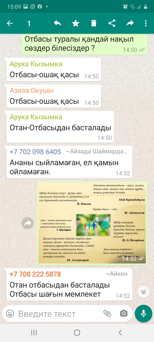 "Отбасы – қазақы ортадағы қасиетті ұғым. Себебі ол – ізгі тәрбиелік қайнар көзі, мейірім-махаббат бастауы, саналы тұлға қалыптасуына негіз болар басты іргетасы, бал дәурен балғын шақтың жылы естеліктеріне толы ыстық ұя."