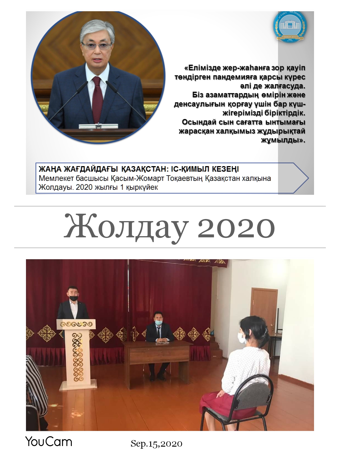 Бүгін мектебімізде санитарлық талаптарды сақтай отырып, Қазақстан Республикасының Президенті Қасым-Жомарт Кемелұлы Тоқаевтың "Жаңа жағдайдағы Қазақстан: іс-қимыл кезеңі" атты Қазақстан халқына жолдауын түсіндіру мақсатында жиналыс өткізілді. Мектеп директоры: Қабиев Парух Ғатауұлы мен мектеп директорының орынбасары: Жеткінов Эльдар Жеткінұлы жолдауда қозғалған мәселелермен ұжымды таныстырып, талқылау жұмыстарын жүргізді.