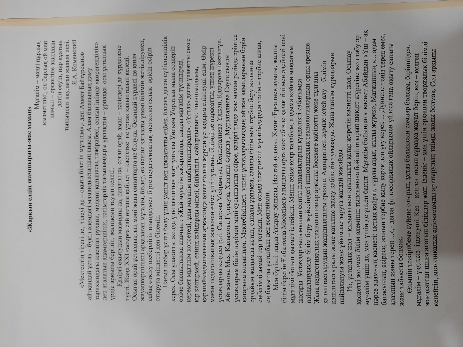 "Ұстаздығым-мәңгі тәжім басымдағы,