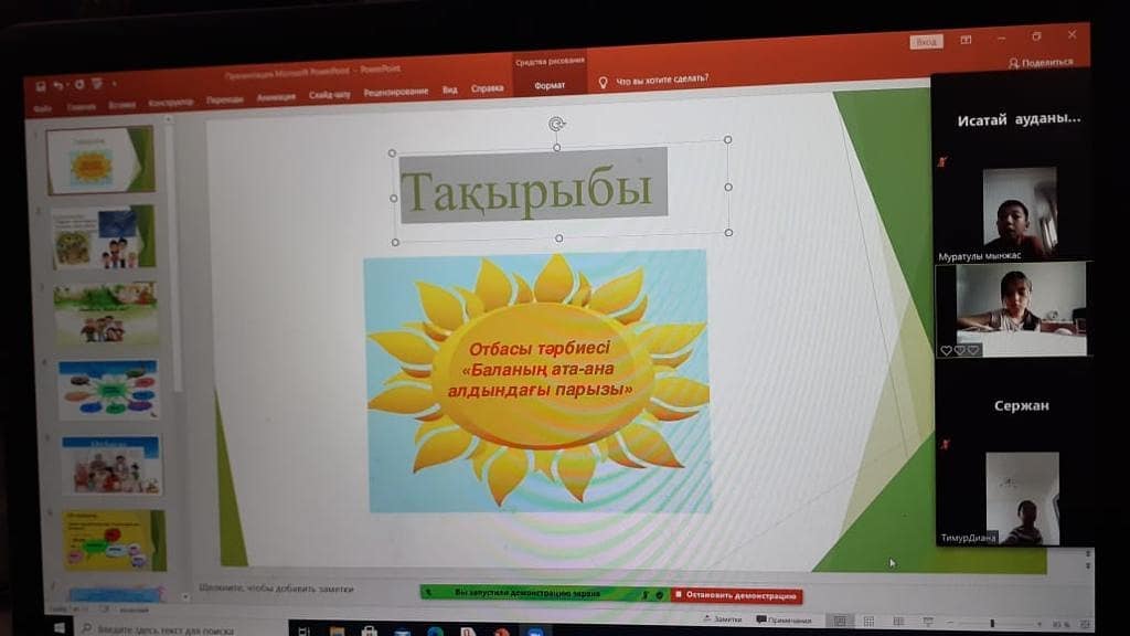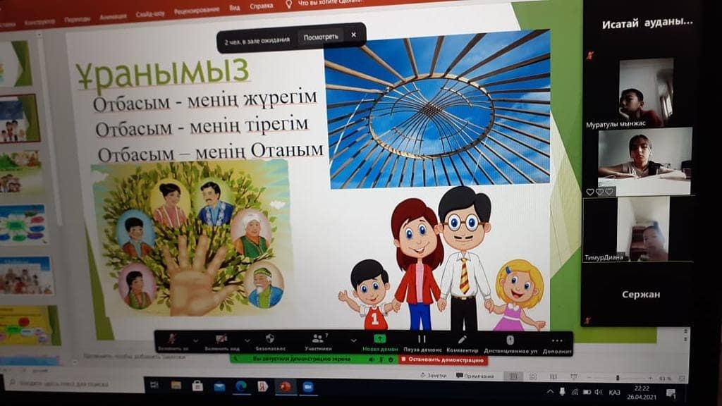 "АТЫРАУ ОБЛЫСЫ БІЛІМ БЕРУ БАСҚАРМАСЫНЫҢ ИСАТАЙ АУДАНЫ БІЛІМ БӨЛІМІНІҢ "ЖАЛПЫ БІЛІМ БЕРЕТІН ҒИБАТОЛЛА МӘСӘЛІМОВ АТЫНДАҒЫ ОРТА МЕКТЕП" КОММУНАЛДЫҚ МЕМЛЕКЕТТІК МЕКЕМЕСІНДЕ Отбасы сағаты акциясы жүргізілуде. Осыған сәйкес 4б-сыныбында Отбасы тәрбиесі бойынша "Баланың ата-ана алдындағы парызы" тақырыбында Zoom платформасы арқылы тәрбие сағаты өткізілді.