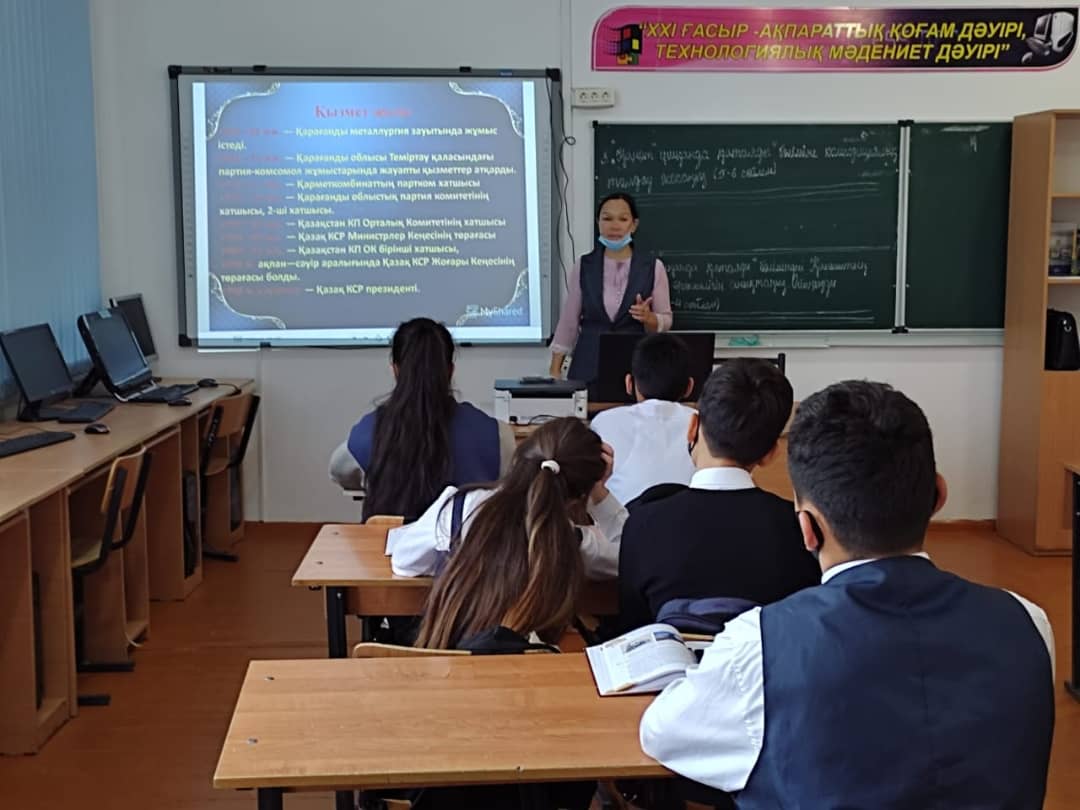 Жалпы білім беретін Ғибатолла Мәсәлімов атындағы орта мектеп КММ-де 1-желтоқсан Тұңғыш Президент күніне орай өтілген сынып сағаты