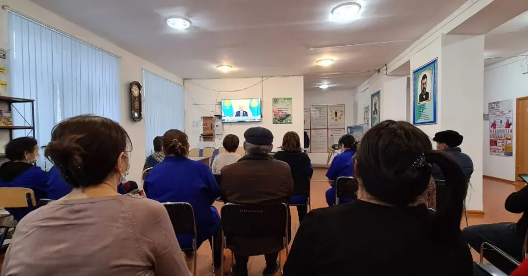 11қаңтар күні Ақордада өтіп жатқан Парламент мәжілісіндегі ел Президенті Қасым-Жомарт Тоқаевтың мемлекетіміздегі саяси-әлеуметтік, экономикалық мәселелерді шешуге байланысты жасап жатқан мәлімдемесін жалпы білім беретін Ғибатолла Мәсәлімов атындағы орта мектеп КММ-нің ұжымы мекемедегі лед-экран арқылы көріп, танысты.